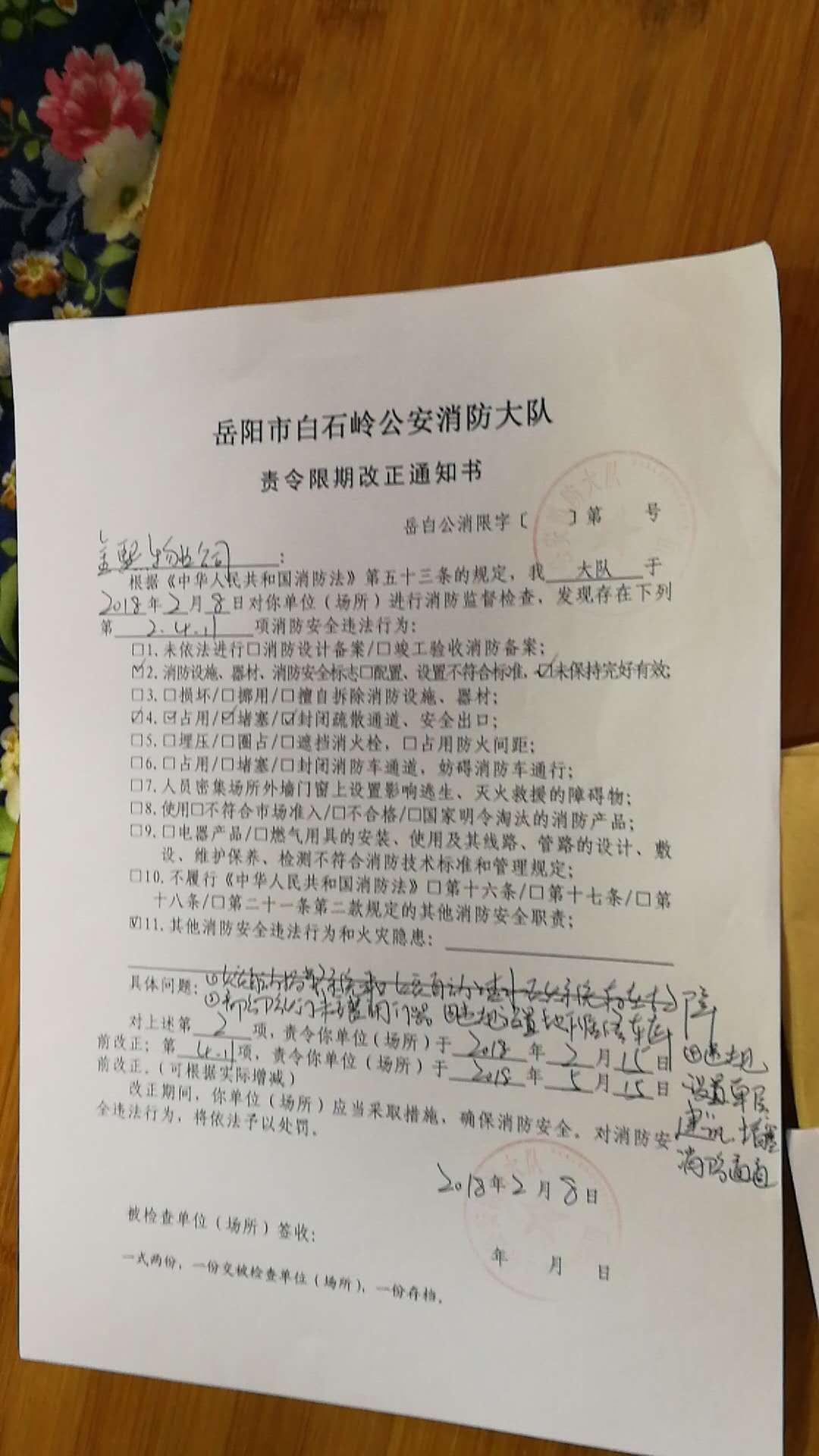 根据你来信反映的情况,消防支队再次进行了核查,并依法采取了相关措施,同时将处理情况电话向你告知。感谢你来信反映情况!