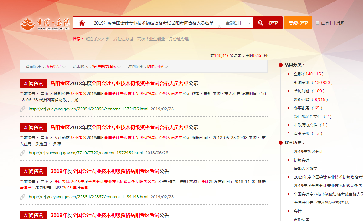 按照湖南省财政厅、湖南省人力资源和社会保障厅有关规定,2019年度全国会计专业技术初级资格考试岳阳考区合格人员名单已于2019年6月20日至27日由市人社局在该局官方网站公示。