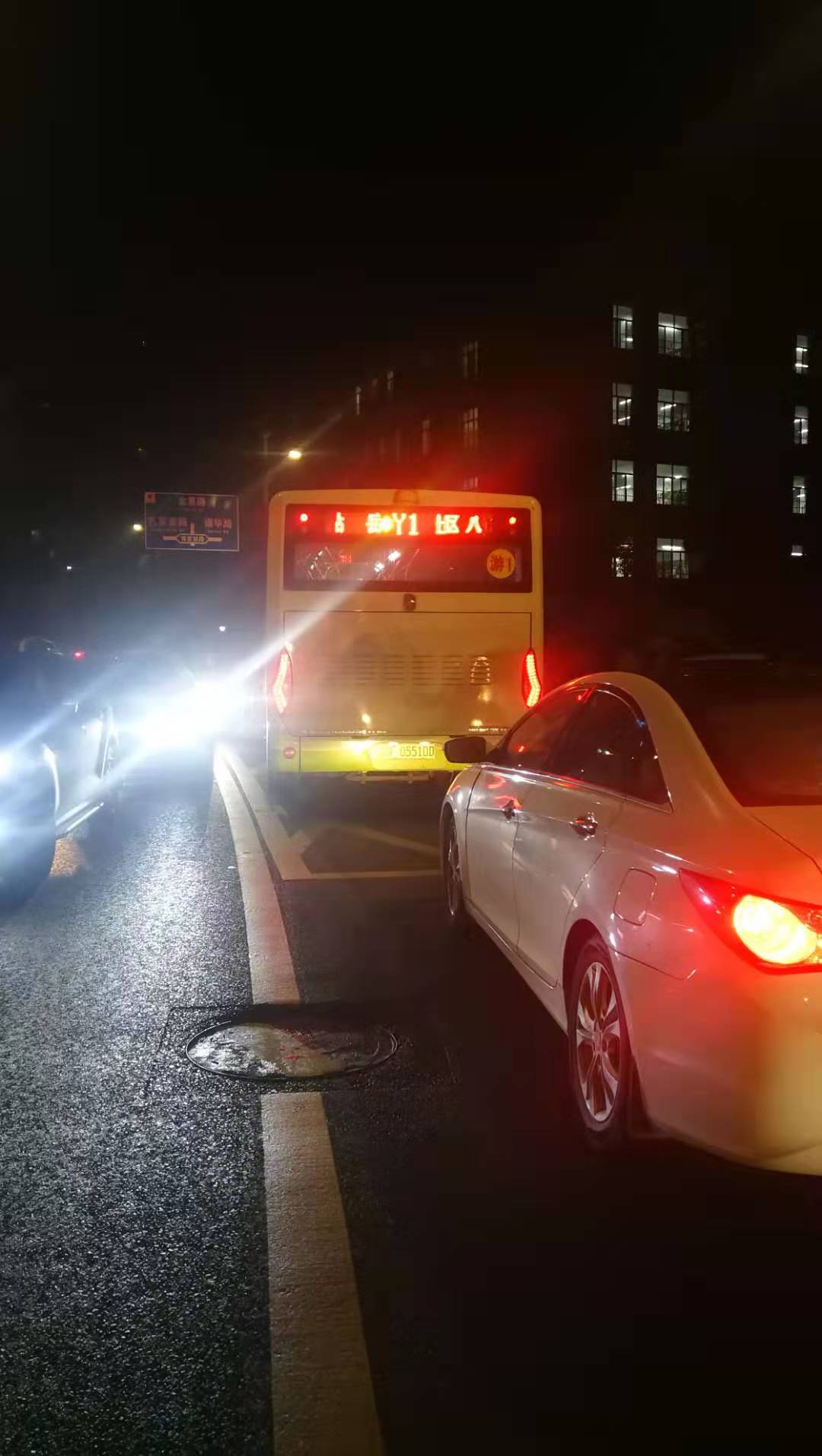 2019年11月26日晚上19:30左右一辆牌照号为“湘F05510D”的 Y1 路公交车,在路过湘一南湖学校大门口时,因为大门口交通堵塞,大肆鸣笛好几分钟,路过的市民上前劝导说“这是学校不要鸣笛”时也不听劝,甚至在道路旁的教学楼里的学生都打开窗户大喊不要鸣笛也不听。