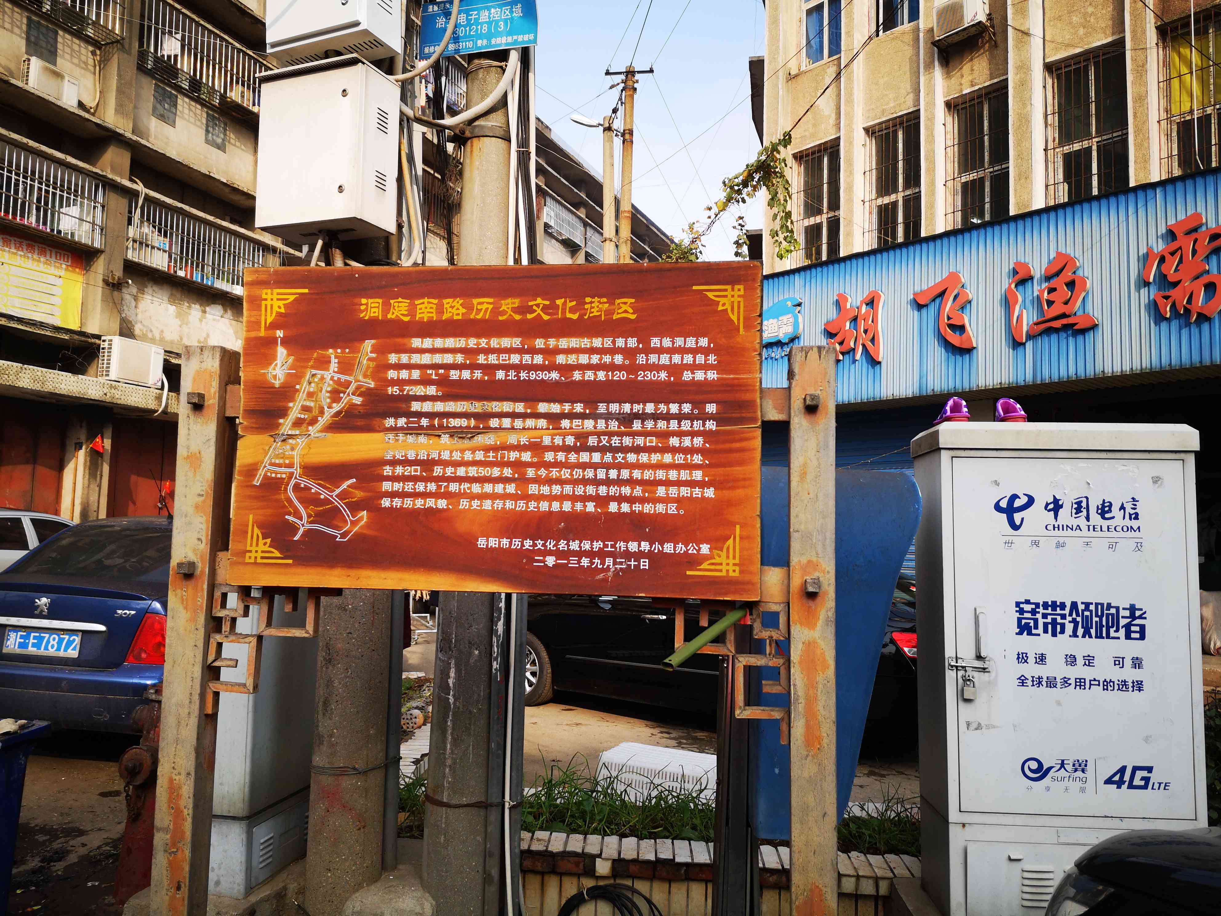 这是位于天岳山的一块洞庭南路历史文化街区标识牌,木板斑驳断裂,部分文字已模糊,架子锈迹斑斑。标识牌是对老城区的介绍,也是岳阳的另一种形象代言,平时应该没有人进行维修管理,建议相关部门引起重视。
