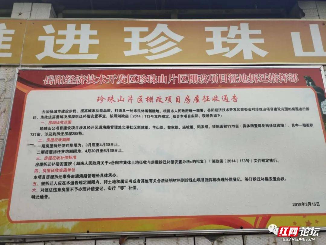 当地居民介绍:为了美化城市和改善居民居住环境,岳阳市经济技术开发区于2018年3月15日发出珍珠山片区棚改项目征收通告,决定同期启动一期(珍珠山公园)二期(棚改)项目征收。在一期项目启动和建设中速度很快,至2019年已经完成了征收腾地建设的各项工作,一座崭新的城市公园展现在市民眼前。但二期的棚改工作却迟迟没有启动,让生活在这里的居民苦不堪言。