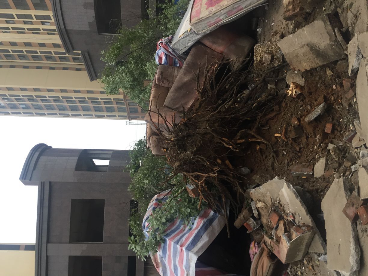 您好,我们小区昨晚发生强拆围墙事件,还有6颗栽在围墙边已经12年的樟树也被挖掘机连根拨出,有图片为证。