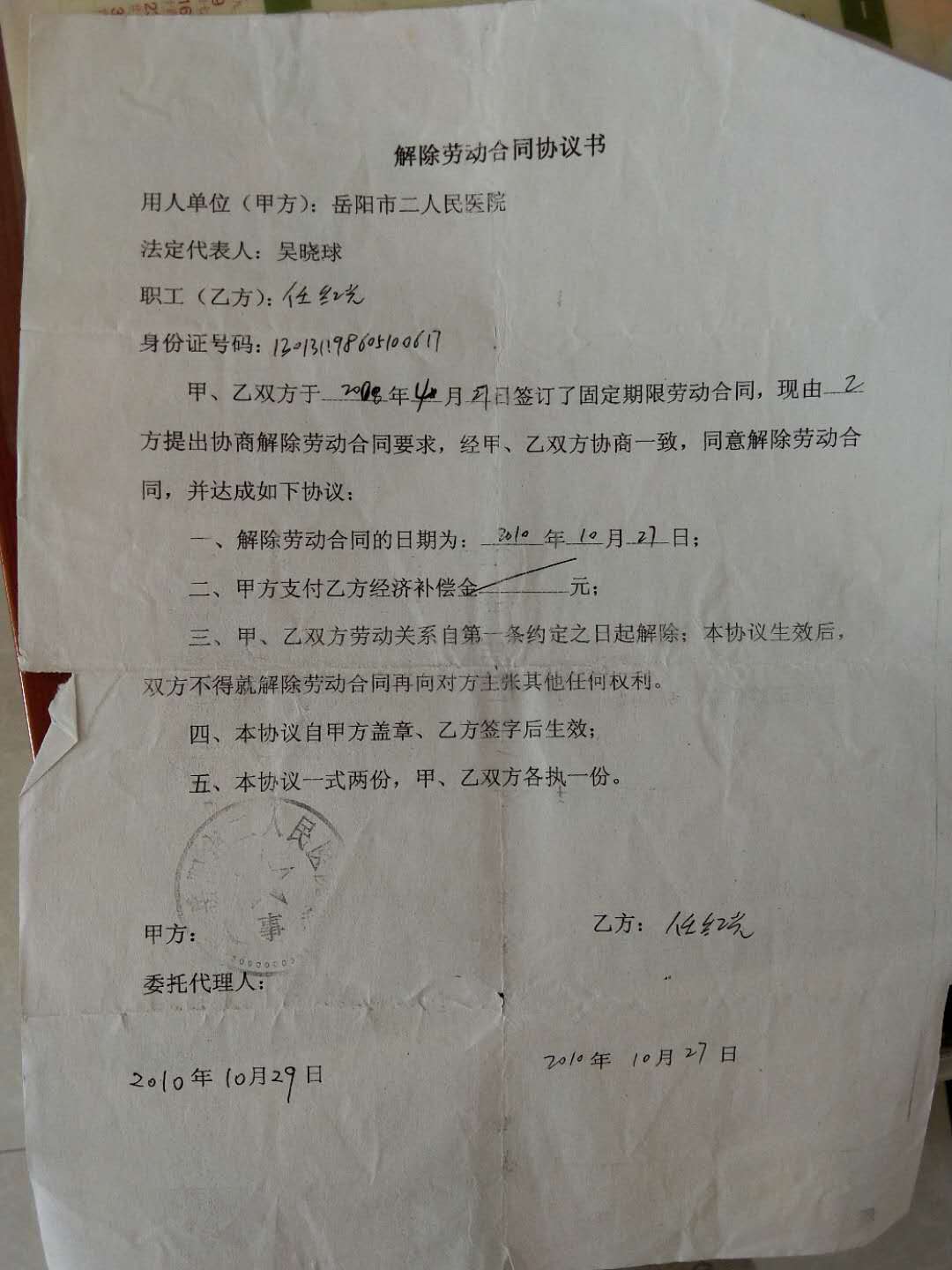| 内容: | 尊敬的领导: 我是2008.6月毕业于岳阳职业技术学院的一名学生,2008.4月至2010.10月27就职于岳阳市二人民医院,档案自毕业以后就一直放在贵处,2010年11月就职于河北平山县医院,档案一直未动,一直放在贵处,直到辞职(2010.10.27)才去开具报到证,报到期限是2010.12.13日,并且我已在规定日期报到(2010.11.20),档案2012年才调回来,2013.1.23在平山县人事局办理人事代理,期限一年,2014年4月办理事业单位关系,但档案里面缺少转正定级审核表及相关资料,所以想问下能否补办转正定级?补办需要带什么材料?因为离得较远,所以想详细问下,恳求领导积极协调处理,谢谢领导!!! 附件1:fb5c2714f6d6af4c8fa23e9c3211d05.jpg |