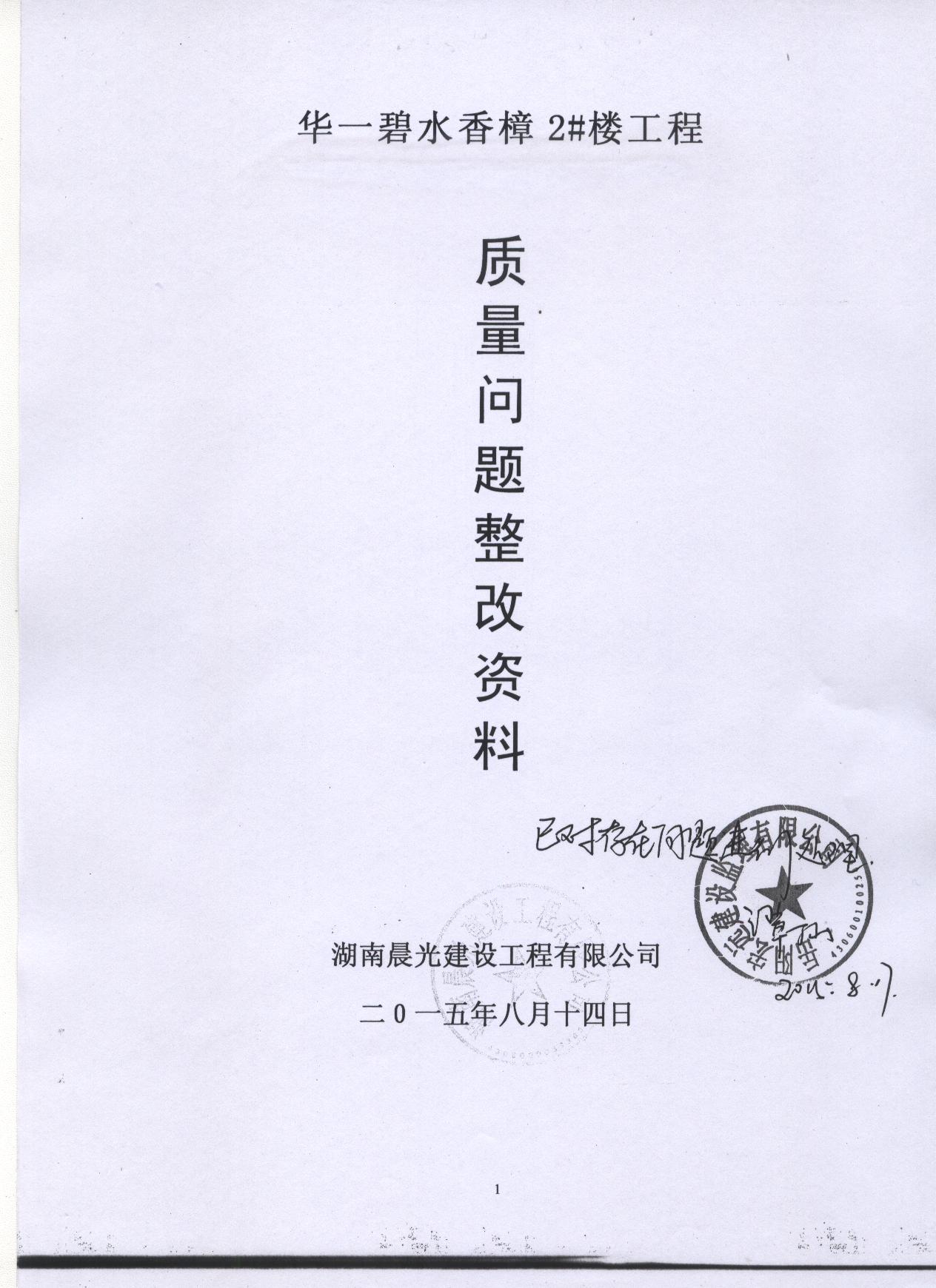 附件一:华一碧水香樟1#2#楼工程质量问题整改资料