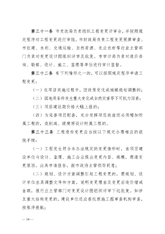定程序对工程变更进行审批。市财政局负责工程变更预算审查。